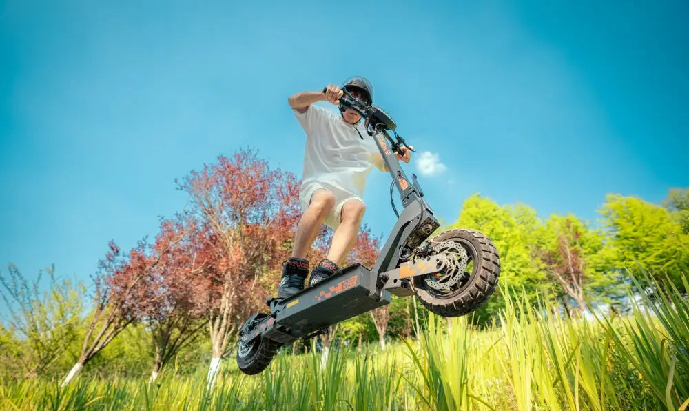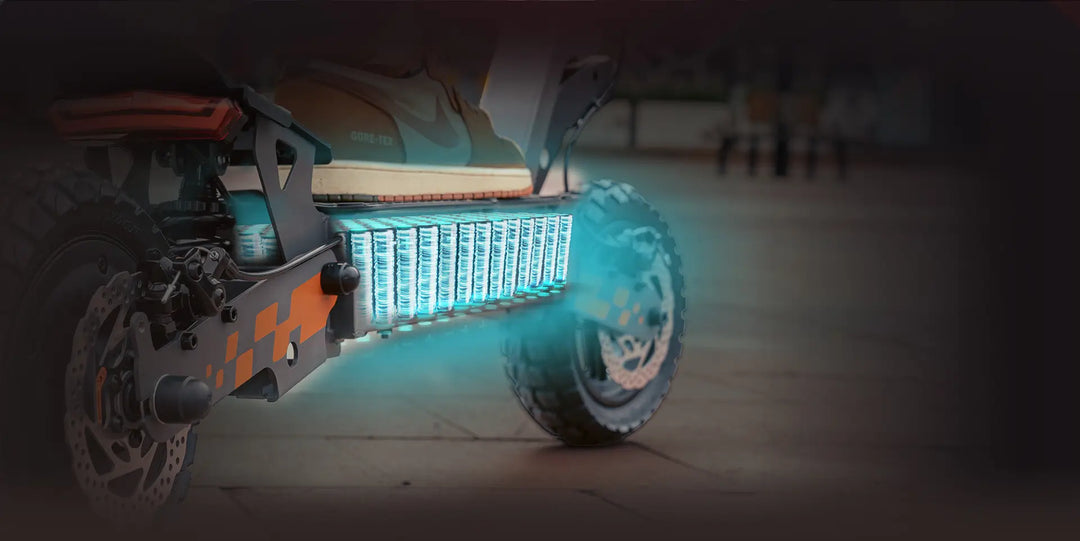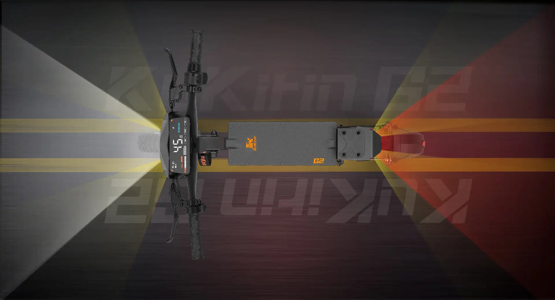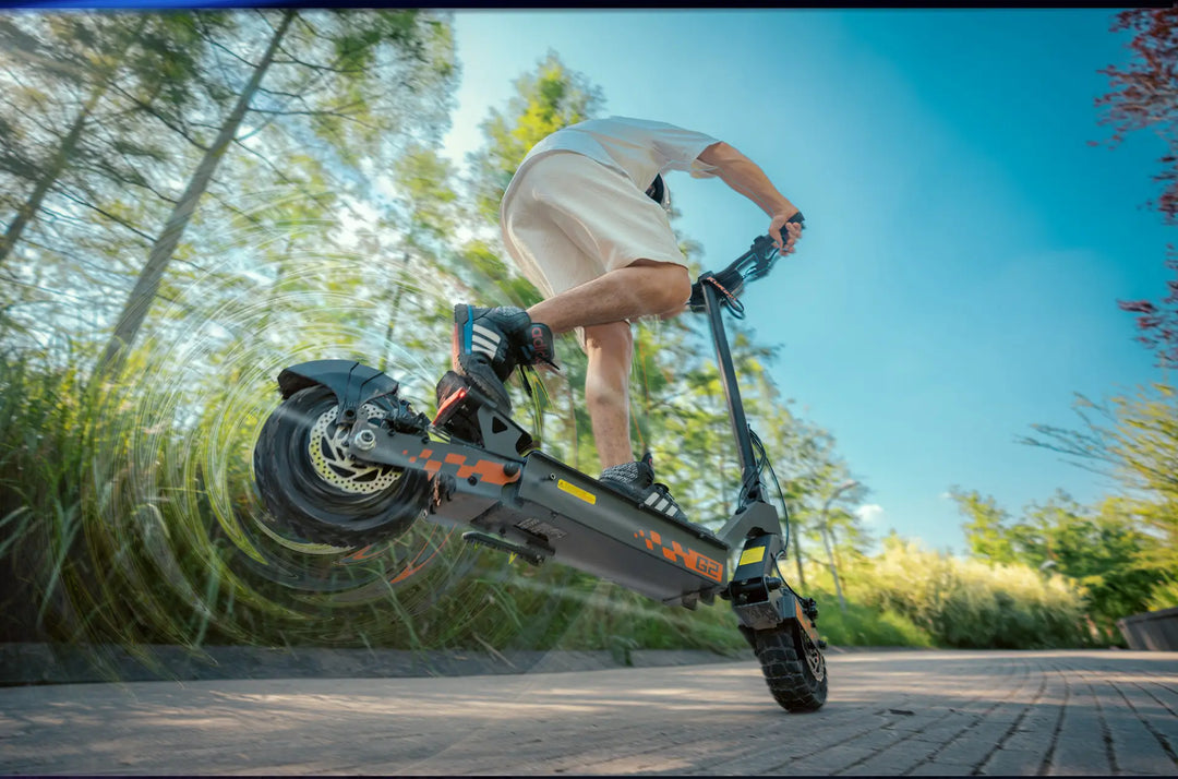 Il KuKirin G2 è dotato di pneumatici da 10 pollici off-road vacuum e ammortizzatori anteriori e posteriori, la cui eccellente aderenza e assorbimento degli urti assicurano una guida fluida in tutte le condizioni stradali. Il design degli pneumatici vacuum riduce il rischio di forature e aumenta la sicurezza e il comfort di guida. Che si tratti di asfalto cittadino o di sentieri sterrati in campagna, il KuKirin G2 può gestirlo con facilità, offrendoti un'esperienza di guida senza pari.