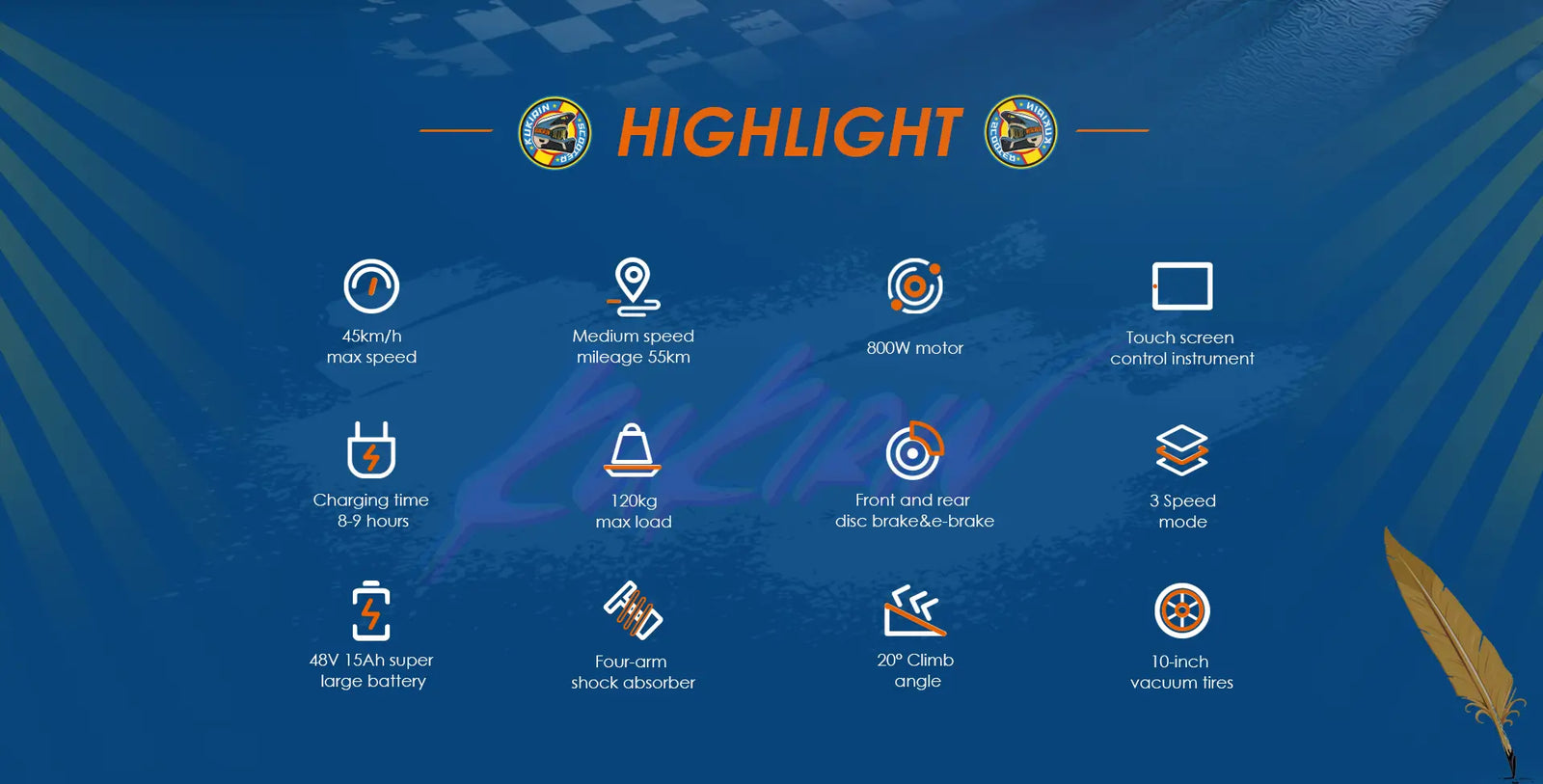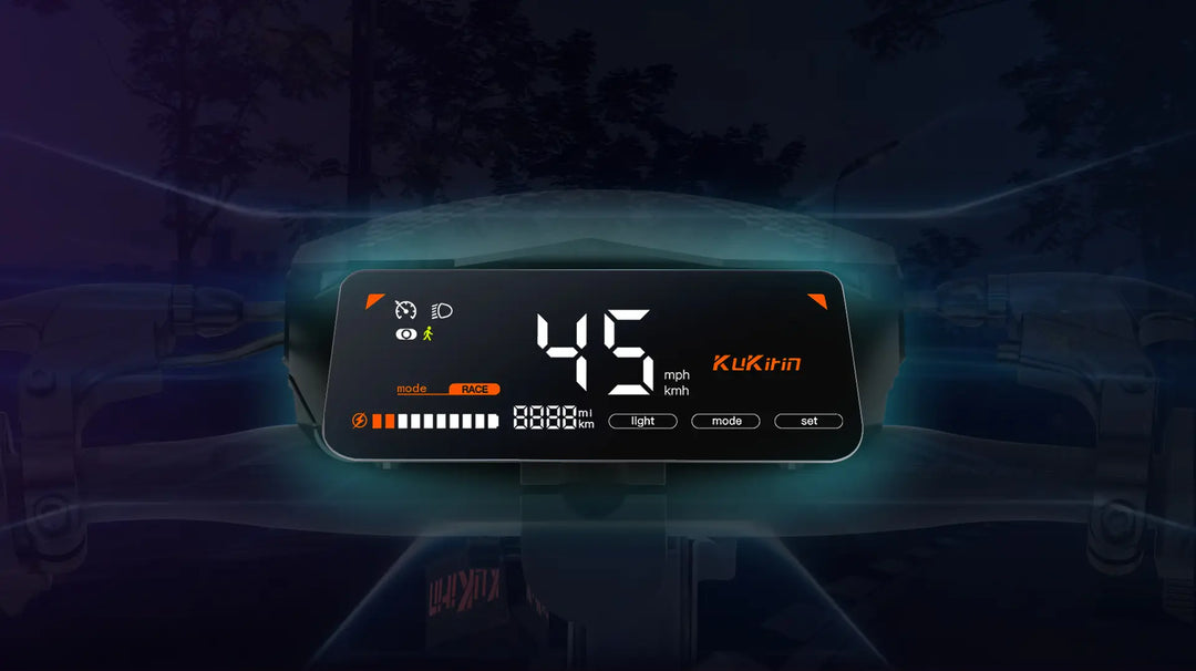 Il KuKirin G2 è dotato di un display touch intelligente ad alta definizione, unico nella sua categoria. Attraverso questo schermo delicato e sensibile, puoi ottenere intuitivamente le informazioni sullo stato in tempo reale del tuo veicolo, tra cui, ma non solo, velocità di guida, batteria rimanente, chilometraggio e marcia attuale, ecc., in modo che tutti i dati chiave possano essere visualizzati a colpo d'occhio. Inoltre, il funzionamento del controllo touch è semplice e intuitivo e puoi cambiare modalità di guida, regolare la luminosità e persino visualizzare la cronologia del tuo viaggio con un solo tocco, realizzando davvero un'interazione uomo-computer senza soluzione di continuità e mettendoti al controllo di ogni singolo viaggio.