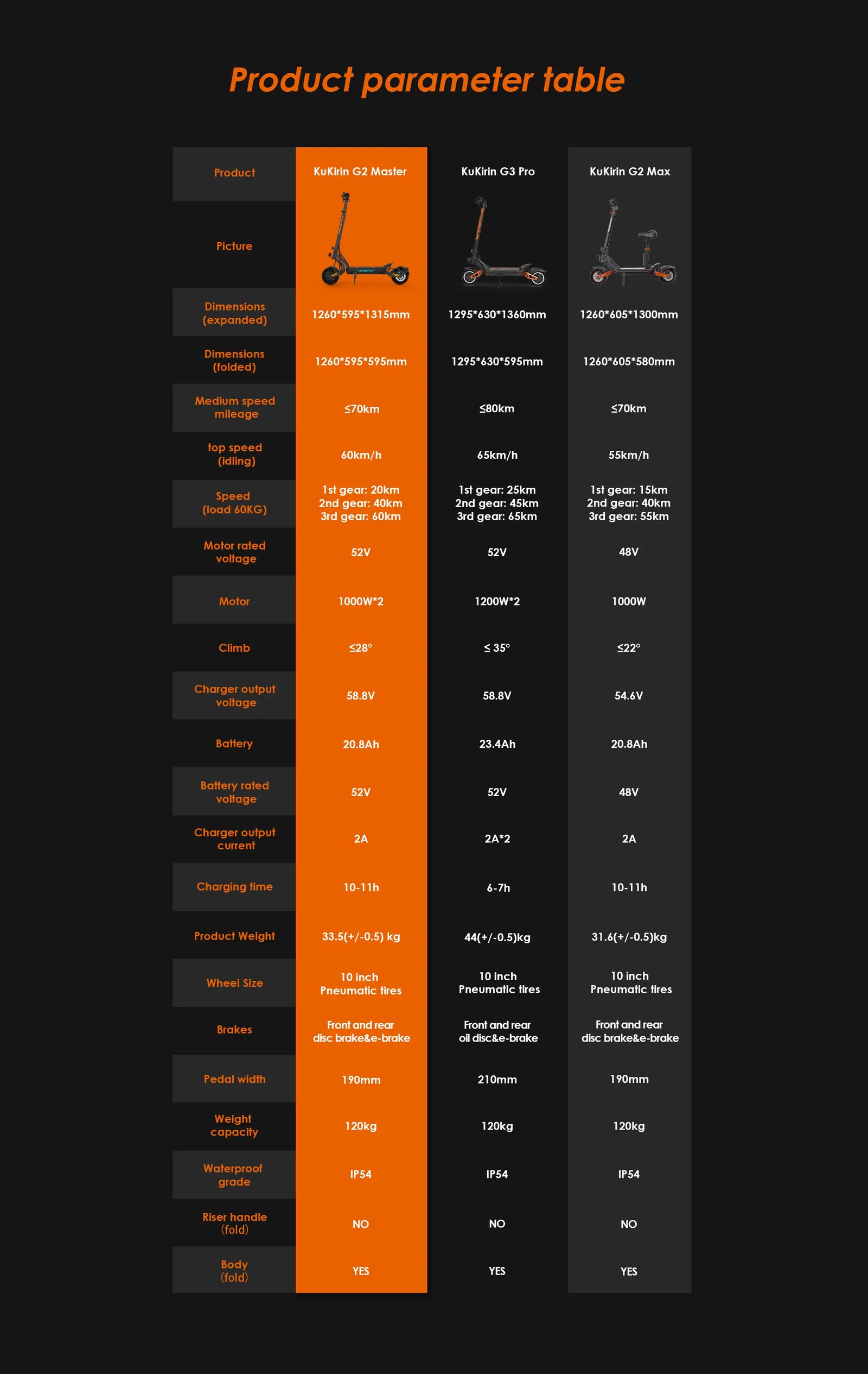KuKirin G2 Master è realizzato in lega di alluminio di alta qualità, che rende la sua struttura solida e durevole. Il robusto telaio dello scooter abbinato a un sistema di piegatura personalizzato garantisce stabilità durante la piegatura e l'apertura e migliora la resistenza strutturale della carrozzeria. Ciò rende lo scooter motorizzato più robusto e in grado di resistere a una varietà di ambienti di utilizzo.