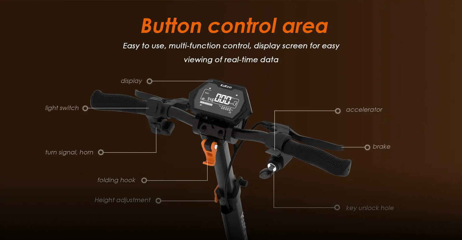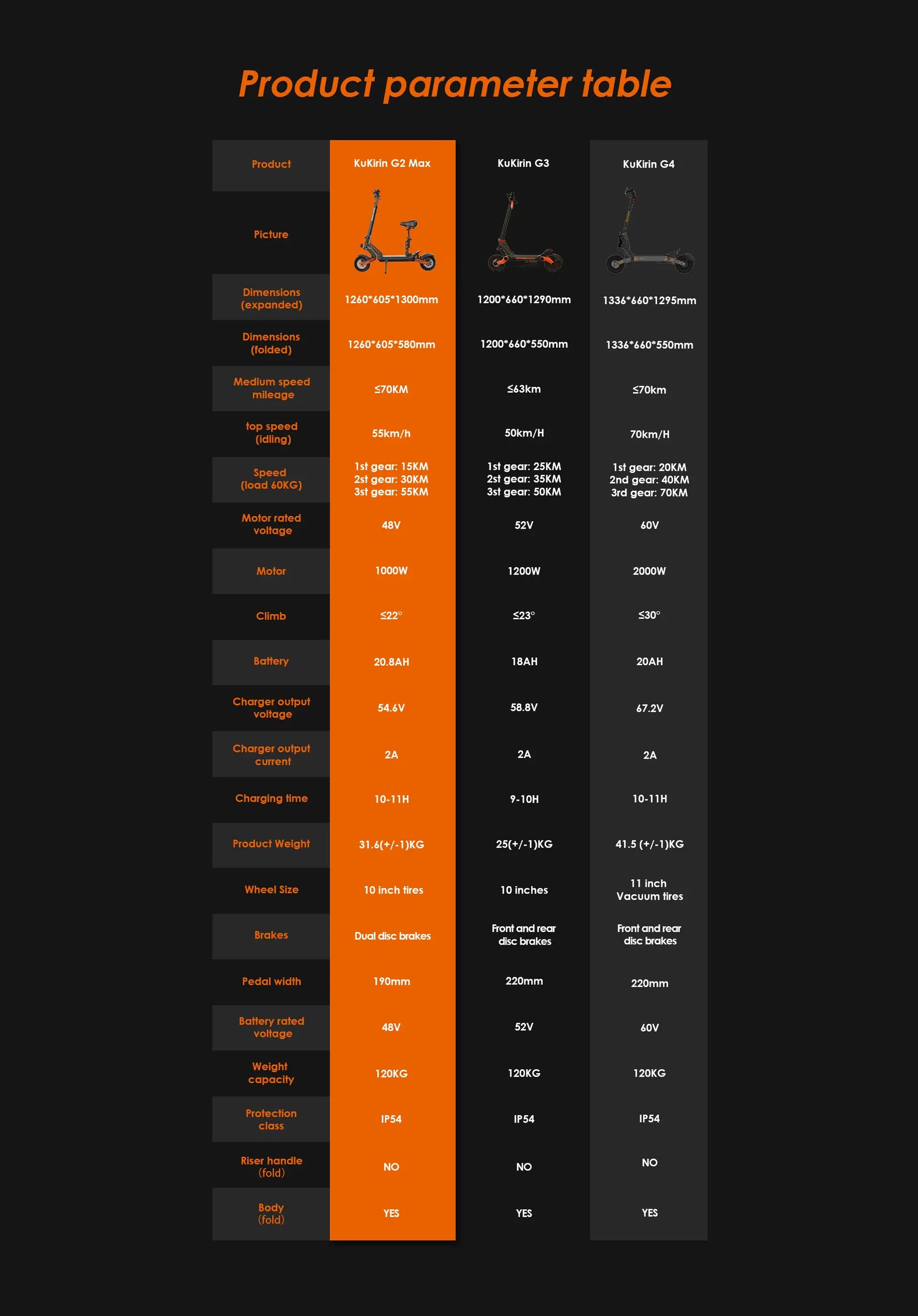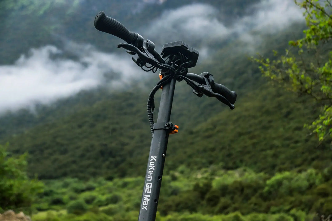 KuKirin G2 Max è dotato di asta regolabile, tre marce, in modo che l'uso sia per una gamma più ampia di persone, e l'uso di un attacco filettato a baionetta a doppio strato fisso, facile e comodo da usare, nella piegatura e nello spiegamento della linea del manubrio non trema, per una guida ad alta velocità per garantire sicurezza.