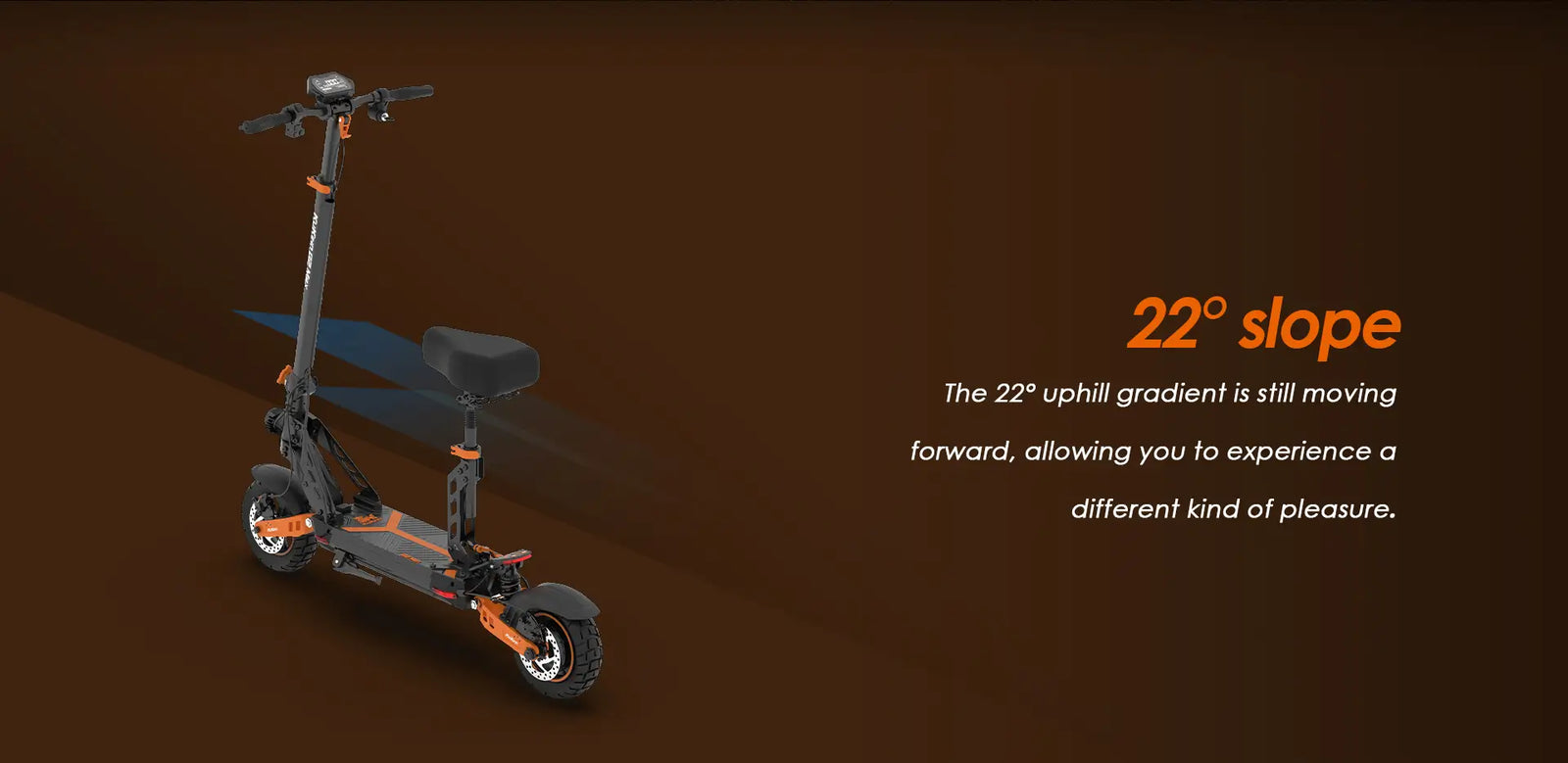 KuKirin G2 Max utilizza un motore super potente da 1000 W, la massima inclinazione in salita raggiunge un sorprendente 22°, ed è in grado di affrontare anche le condizioni stradali più complesse e sconnesse, così non dovrai più preoccuparti di salire e guadare.