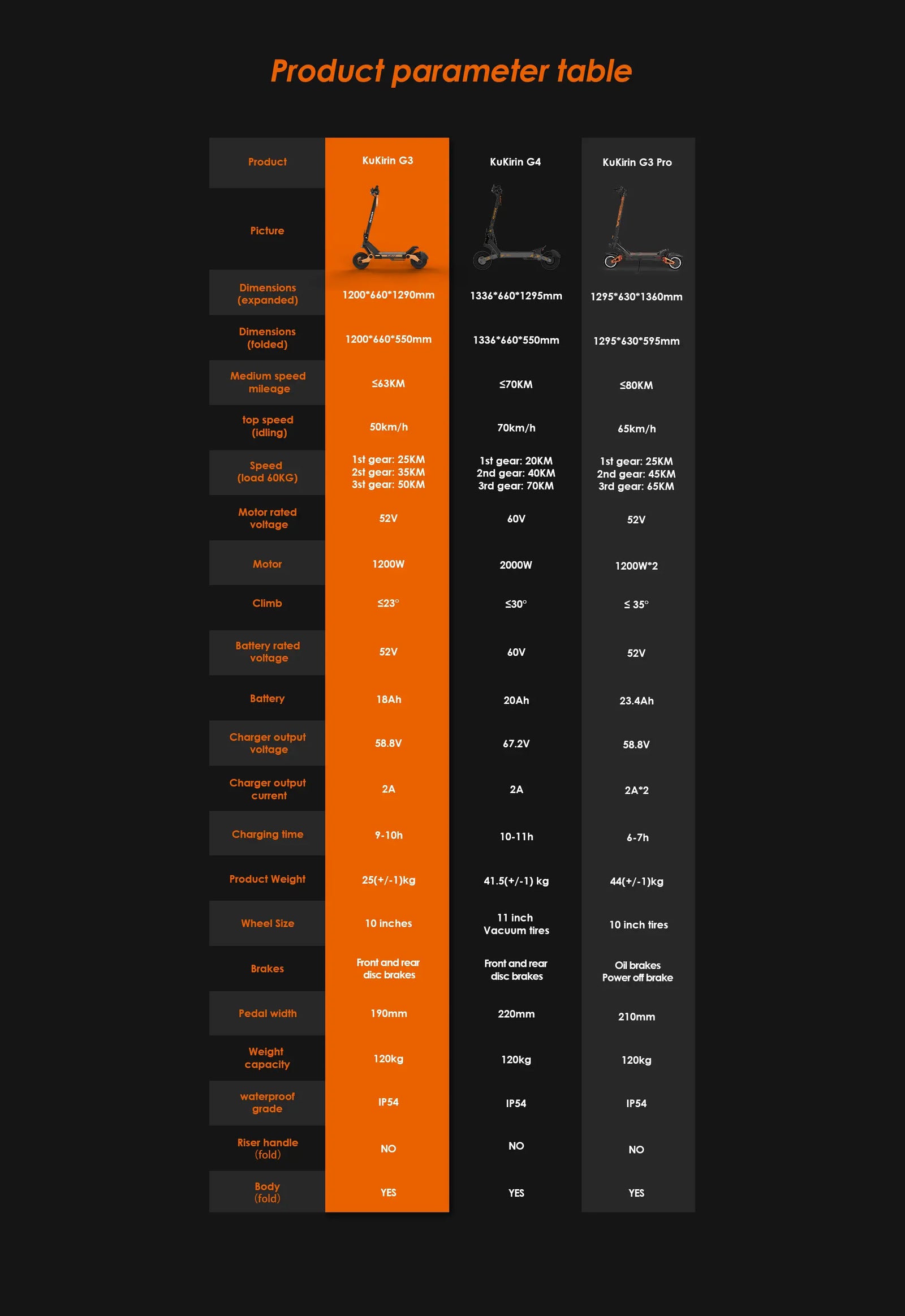 KuKirin G3 ottimizza il materiale e il design strutturale sulla base della garanzia della resistenza e della stabilità del corpo, mantenendo il peso netto del prodotto a circa 25 kg. Il prodotto è facile da trasportare e riporre, con un formato pieghevole compatto, molto comodo per andare e tornare dal lavoro o per metterlo nel bagagliaio di un'auto.