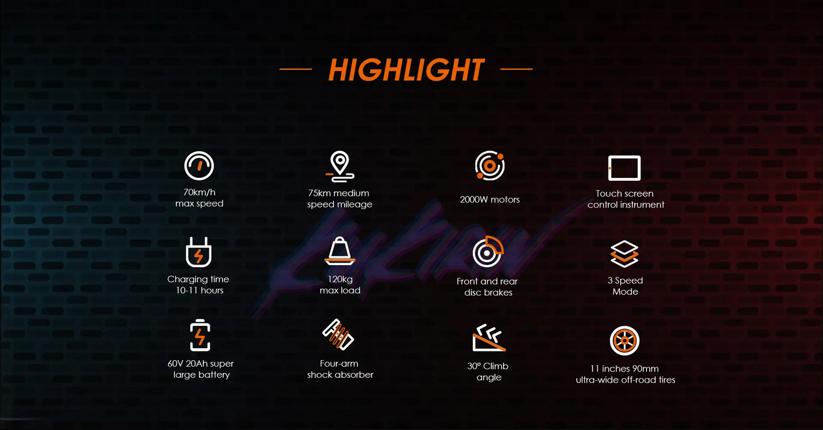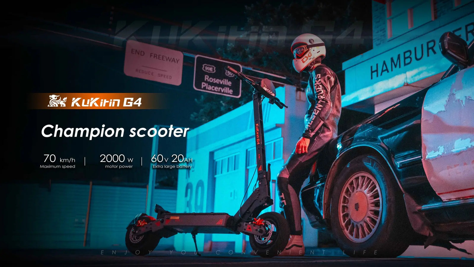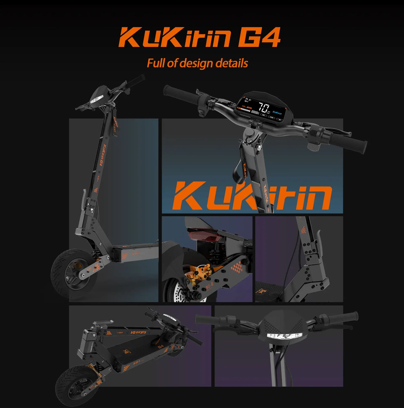 KuKirin G4 utilizza un motore integrato nel mozzo ruota ultra-elevato da 2000 Wh con una velocità massima fino a 70 km/h. Il motore utilizza una doppia struttura di raffreddamento per mantenere le prestazioni per un periodo di tempo più lungo.